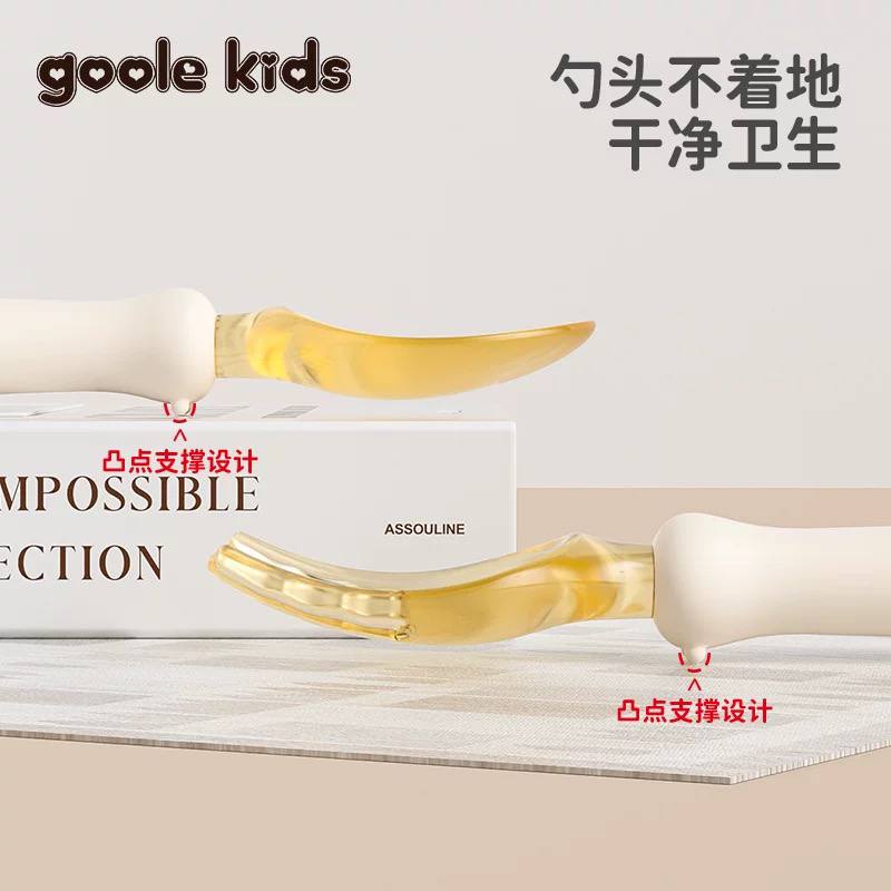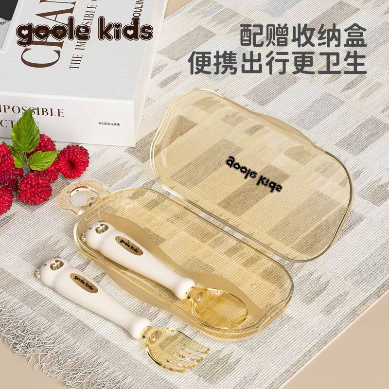دستههای سیلیکونی نرم با طرح خرسی ضدلغزش بوده و به راحتی در دست کودک قرار میگیرند. جنس سری از استیل ضدزنگ با روکش طلایی ایمن و بدون BPA است که در برابر حرارت و شستوشو مقاوم است.